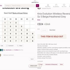 Knix Evolution Reversible Padded Bra Sz 4 Beige/Heathered Grey