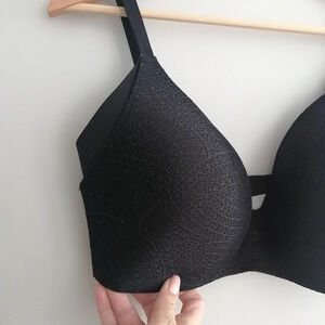"Our sexiest wireless bra – now in ultra-soft lace! This wireless stunner of a bra features a plunging neckline and molded foam cups to give you the most shape and definition of all our bras – without compromising on comfort. Plus, extra side coverage eliminates sideboob and overspill."