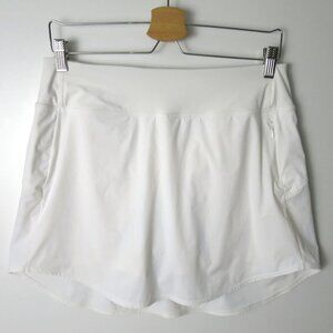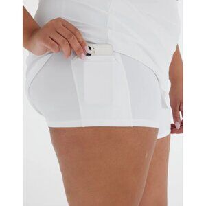 This functional skort has got you covered with lightweight stretch fabric, interior shorts, and a built-in leakproof liner