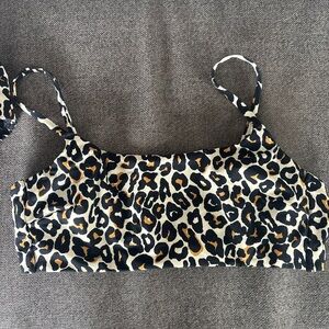 Never warm but took tags off. Realized it was two small in the chest. High waisted bottoms. Super cute and durable swim suit! Chic Knix bikini top with a bold leopard pattern. Ideal for a stylish beach day.