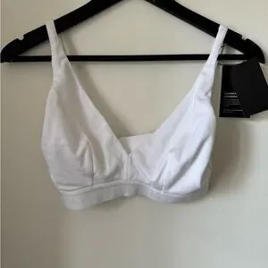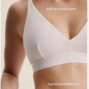 Experience comfort with the Knix white ribbed modal bralette. Featuring a signature underband for support.