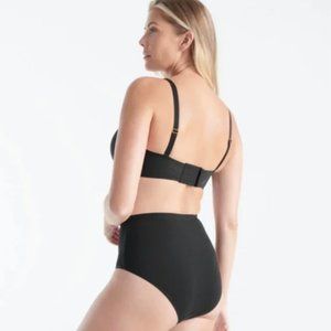 Knix is a Canadian company. This bra gives you just the right low-cut lift and separation you're looking for, with extra side coverage and light padding. Wireless contour and support. The wing gives you extra coverage on the side and back area for spillage. 4-way extra stretch in the band offers unbelievable comfort as the bra adapts to your shape. Molded foam cups lift and separate to give a great shape. They are light weight and don't add any extra bulk.