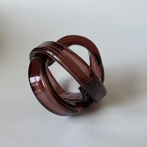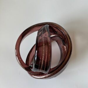 Knot Orb Art Glass Purple-Brown with Gold Stripes Vintage Collectible