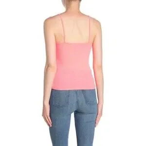 Know One Cares Ribbed Ruffle Tank Neon Pink Size L