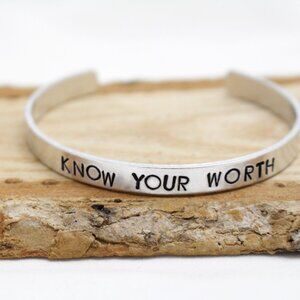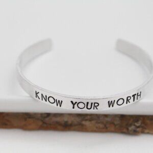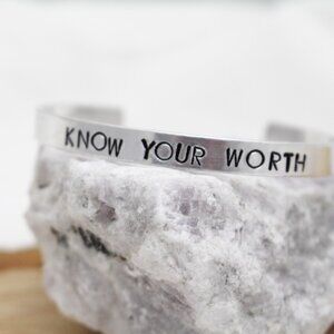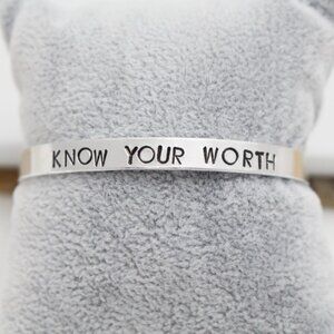 Know Your Worth - Hand Stamped Anodized Aluminum Bangle - Adjustable