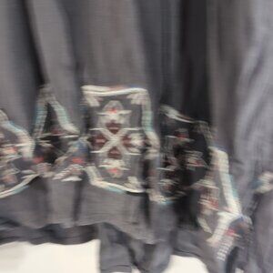 Knox Rose M Medium Gray Embroidered Sleeveless Dress Aztec Boho Tie V-Neck Tank