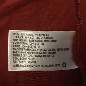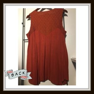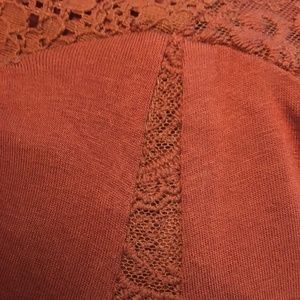 The sweet top is very forgiving and soft, in a vibrant rust colour. Fully lined, with lace detail on the front and back.