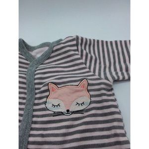 Koala Baby infant girls sleeper footie size 0-3 Months. Pink and grey stripes with fox theme. 100% cotton.
