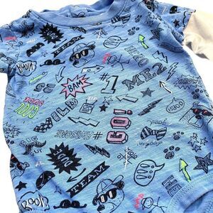 This is a cute little light blue onsie with attached white sleeves. Cool school book doodle print makes it rad and totally adorable at the same time. Get this little cutey in your bundle with some jeans, kicks and jacket for an amazing closet discount! EUC.