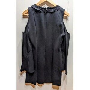 Loopy fringe and tonal embroidery add textural dimension to this densely knit, off-the-shoulder dress with a chicly tailored aesthetic.