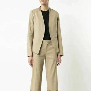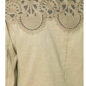 Kobi Halperin Embroidered Linen Blazer Womens XS Tan Open Front Lace Jacket