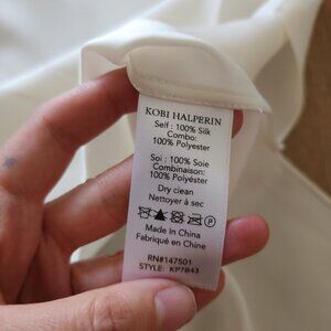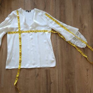 Material: 100% Silk Body | Polyester Combo (I'm guessing the lace cuffs)