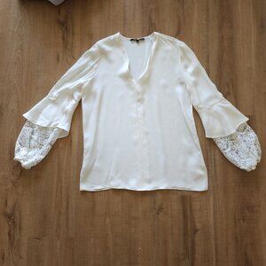 Kobi Halperin Silk Long Sleeve Lace Detail Blouse