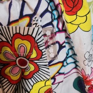 excellent condition vibrant color. asymmetrical cut long side to the left. ties to the left as well.