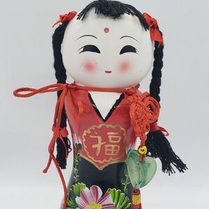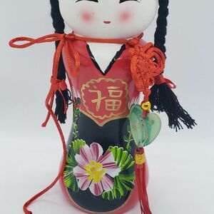 Kokeshi Doll Female Vintage Japanese Ceramic Piggy Bank with Lucky Charm