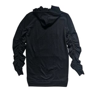 Great condition. There is a little discoloration of the inner back tag and very light fading at the tips of the hems of the sleeves.