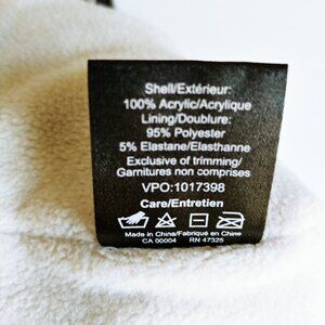 Made of 100% acrylic exterior and lined with 95% polyester and 5% elastane fleece.