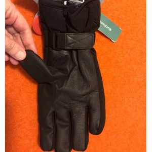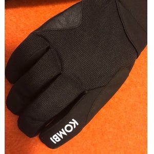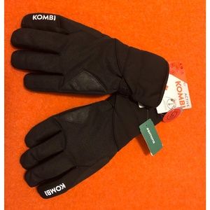 Kombi The wonderer black leather and knit gloves new with tags. Light and quick dry Ultraloft insulation knit, silky Accu-Dri lining to wick away moisture, touch screen compatible, genuine and synthetic leather palm, adjustable cuff with Velcro strap. Designed in Canada. Marked size M (EU 8/9). This item comes from a smoke free, pets friendly home. Recycled bags/box used when possible. Please, let me know if you'd like any additional info. Thanks for watching!