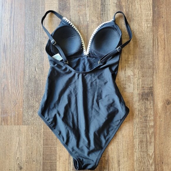 Kona Sol Black One-Piece Swimsuit with White Crochet Trim