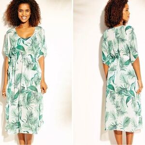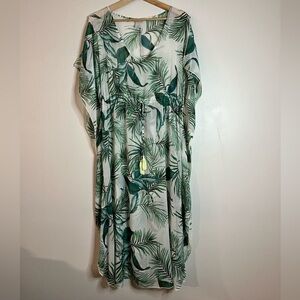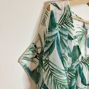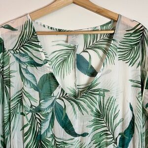 Kona Sol Green Palm Leaf Print Sheer Swim Cover-Up Dress Size M