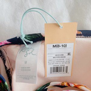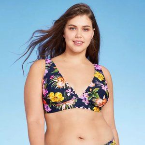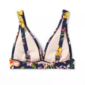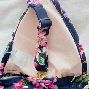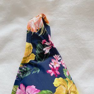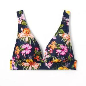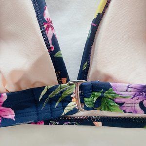 Kona Sol Tropical Print Longline Bikini Top navy blue medium 8/10nswimsuit
