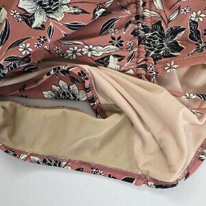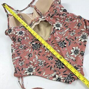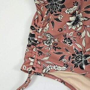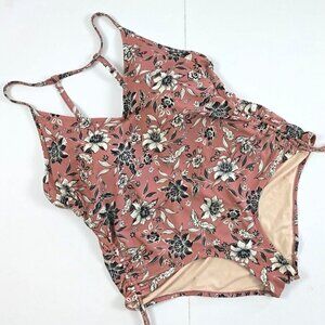 Kona Sol Women's Dusty Rose Floral One Piece Swimsuit V Neck Side Ties Size 18W