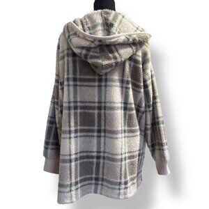 Koolaburra by Ugg Plaid Fleece Cardigan Cozy Soft Hooded Sweater Oversized