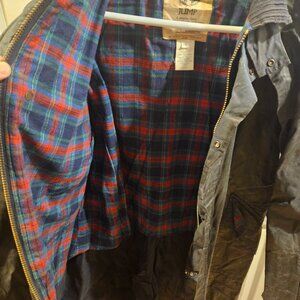 This is an exceptionally well made oilskin jacket made by Koolah. Designed by Ian Miller, famous for his long career, multiple Olympic appearances and life long commitment to the equestrian community. I have owned many oilskins from being involved in the horse community myself for many years and this is one of the nicest slickers I have encountered. Check out the photos carefully, pay attention to the little things like pockets, lining etc. If you have any questions I will do my best to answer. The Jacket itself before packaging weight about 5lbs. Item is in excellent shape and comes from a smoke free home and has been stored in the house when not in use. This item has not been near a stable in several years. I do not accept returns so look at the photo carefully before purchase. If you need specific measurements let me know.