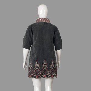 Step into the joyful charm of the KOR Company dress, where whimsical embroidery design meets unmatched comfort. This unique piece has pockets and delights with playful details that brighten your day while offering a soft, flattering fit that moves with you. The fabric has a look of faux suede. Try it on with a pair of tights and tall boots. Measurements were taken across garment when on flat surface: Armpit to armpit: 21" (53cm); Waist: 21" (53cm); Length: 31" (79cm). Condition: Preowned, Excellent. The original size tag is not included; however, this dress is estimated to be size 12 or L based on the fit on a size 12 model.