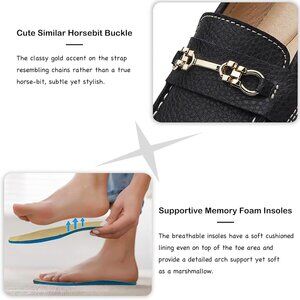 Cute gold accent buckle: The gold tone hardware on the strap resembling chains with the subtle sparkly insets, which will contrast with whatever you wear that day, classic yet stylish. They are attractive with the gold buckle embellishments as well as a slim, sophisticated shape, dainty yet durable, which adds style to the loafers. The decorative accent across the toes is elegant, and dresses the shoes up a little. Nicely stitched. The stitching is lovely, strong, even and well done.