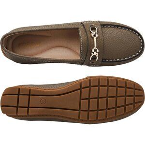 Kordal Women's Light GrLeather Gold Accent Buckle Slip-Ons Walking Flats Loafers