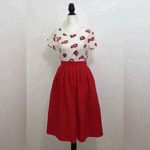 - Outfit of The Day Idea with Korean style Red A-line midi Skirt size S
