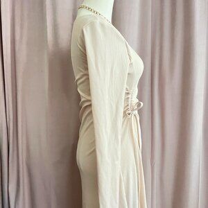 Cream midi dress with long sleeves and tie detail #midi #longsleeves #bows