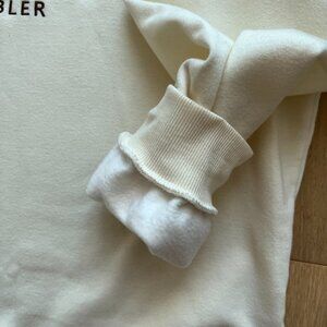 Cream coloured teddy sweatshirt with fleece inner. Has an embroidered teddy on the front. This is a size unisex small but fits oversized so I think womens medium can wear as well.
