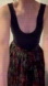 Vintage dress with olive green and red floral pattern.