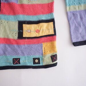 Turn heads in this Vintage Koret Colorblock Patchwork Cardigan, bursting with playful charm and bold retro flair. Featuring a vibrant mix of teal, pink, and pastel hues in a geometric patchwork layout, this cotton blend knit sweater is perfect for Y2K lovers, dopamine dressers, and anyone obsessed with eye-catching vintage layers.