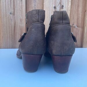 Kork Ease Boots Womens 7.5 Isa Ankle Booties Brown Leather Side Zip Buckle Block