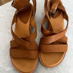 Kork-ease brand leather ankle strap sandals in brown. Butter soft leather and top quality buckle. A classic, comfortable, and high quality shoe.