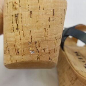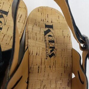 Korks Kork-Ease Austin Sandals Women 11 EU 43 Navy Leather Faux Cork Wedge Shoe