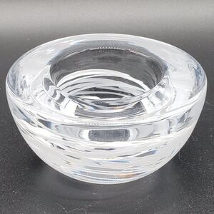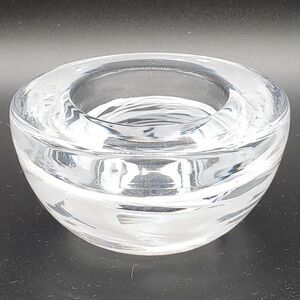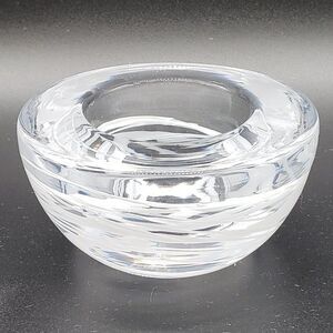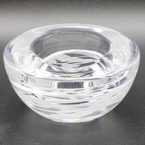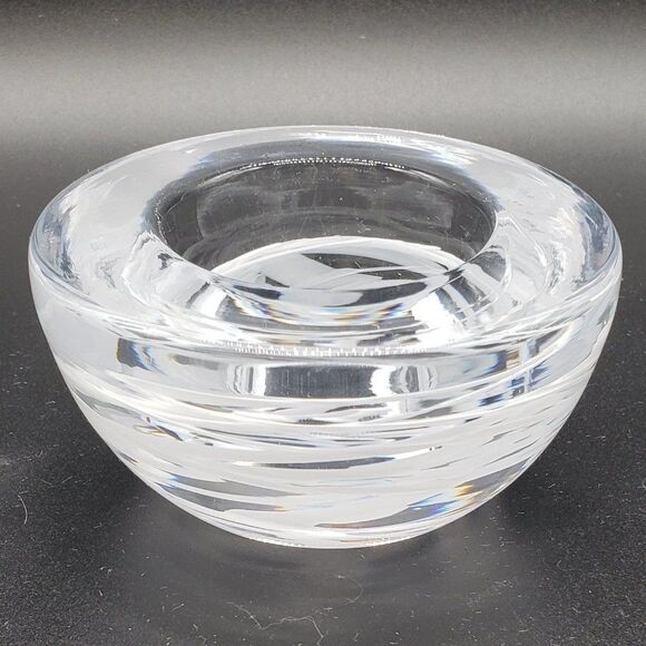 Kosta Boda MCM Swedish Thick Clear Crystal White Swirl Art Glass Tealight Holder