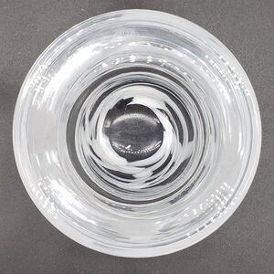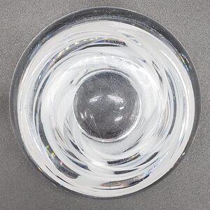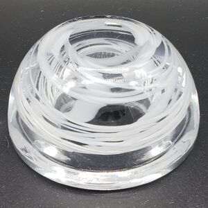 -Pretty thick clear crystal art glass tealight holder is heavy and has a wonderful bright white swirl within the glass