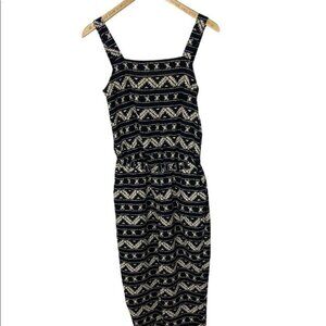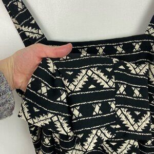 Olé by Koton Black Printed Square Neck Jumpsuit in Women's Size 34 (or XS). Super bohemian and comfortable. Just throw on and go. Wide straps. Has pockets! Trendy square neck with hippie minimal black and white printed pattern that goes with everything. Perfect addition to a capsule wardrobe. Can be dressed up with heels and a cardigan or throw on some sandals at the beach. Zipper closure. Poly. Machine washable. Very good pre-loved condition. No visible flaws.