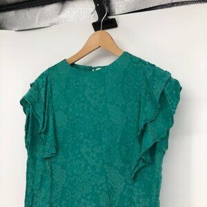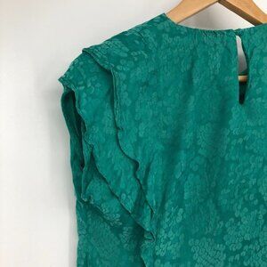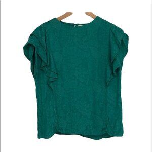 Koton teal textured ruffle short sleeve t-shirt