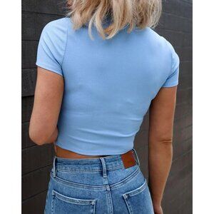 Although this crop top is made of ribbed knit fabric, it is very comfortable, cool, and breathable, you won't feel any hot even in summer. Basic ribbed short sleeve crop tops for women. Trendy tops for women, womens workout tops, teen girl clothes, juniors tops, date night tops for women, business casual tops, teacher outfits, sexy blue crop top, blue tshirts, blue cropped top