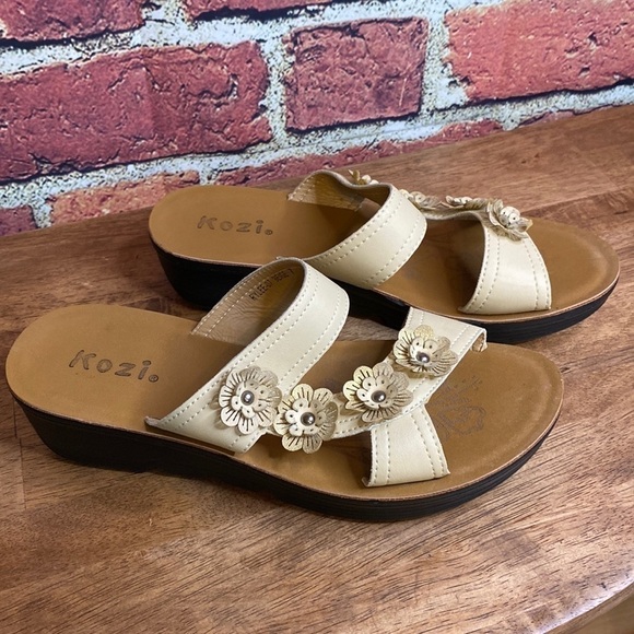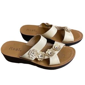 Kozi Slip On Slide Cream Floral Wedge Sandal Size 7