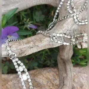 Unfortunately this beautiful necklace is unmarked but was sold as a set with a pair of Kramer earrings that are marked. I suspect the necklace may also be a (unmarked) Kramer but I cannot be certain as I spent many hours searching for a similar necklace and found none. I believe it is worthy of the price I am asking because it is a unique necklace that is both rare and is high-end vintage fashion jewelry which uses precious metals and genuine rhinestones.