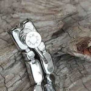 Snap clasps, also known as pressure clasp. With a ball and socket closure mechanism, they provide a secure hold. Snap clasps became prominent in the mid-20th century and are frequently found in antique and vintage costume jewellery.