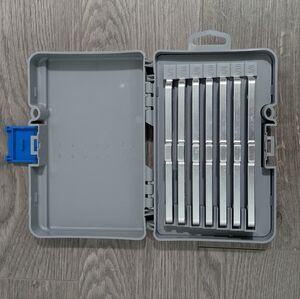 This 7 Piece Bar Set (Sizes 1/8" 3/16" 1/4" 5/16" 3/8" 7/16" 1/2") 3-gauge design router table accessories, makes short work of fine alignments and adjustments.