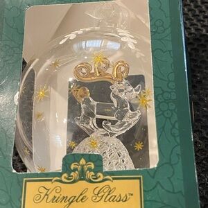 Kringle Glass Colour Changing Leaping Reindeer Ball Ornament