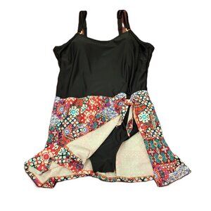 Krista Black One Piece Swimsuit with Floral Skirt Size 22